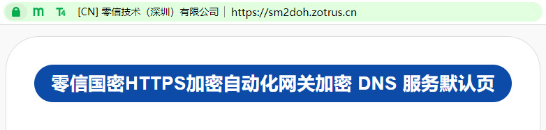 ,如果您在浏览器的“隐私和安全” - “使用安全DNS” 选择“自定义”设置此加密DNS服务网址(https://sm2doh.zotrus.cn/dns-query),则零信浏览器会优先采用国密算法实现加密DNS服务-国密DoH服务。